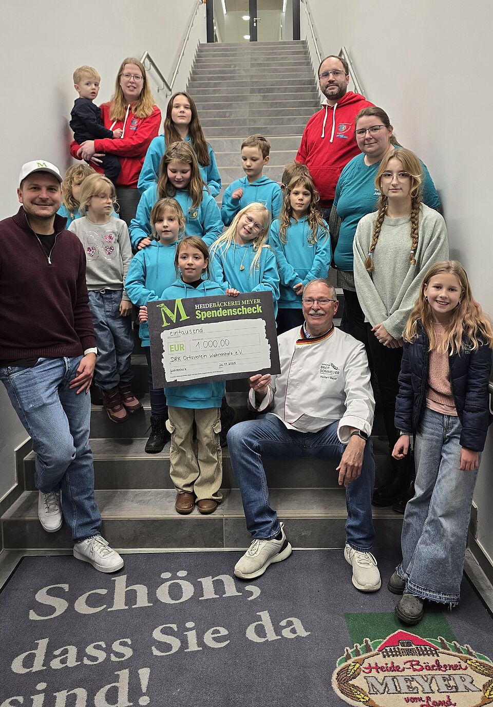 Noch bevor wir zum leckeren Abendbrotbuffet stürmen konnten hatte Familie Meyer uns an der Tür mit einer großen Überraschung empfangen. Ein Check über 1.000 € für das Jugendrotkreuz!